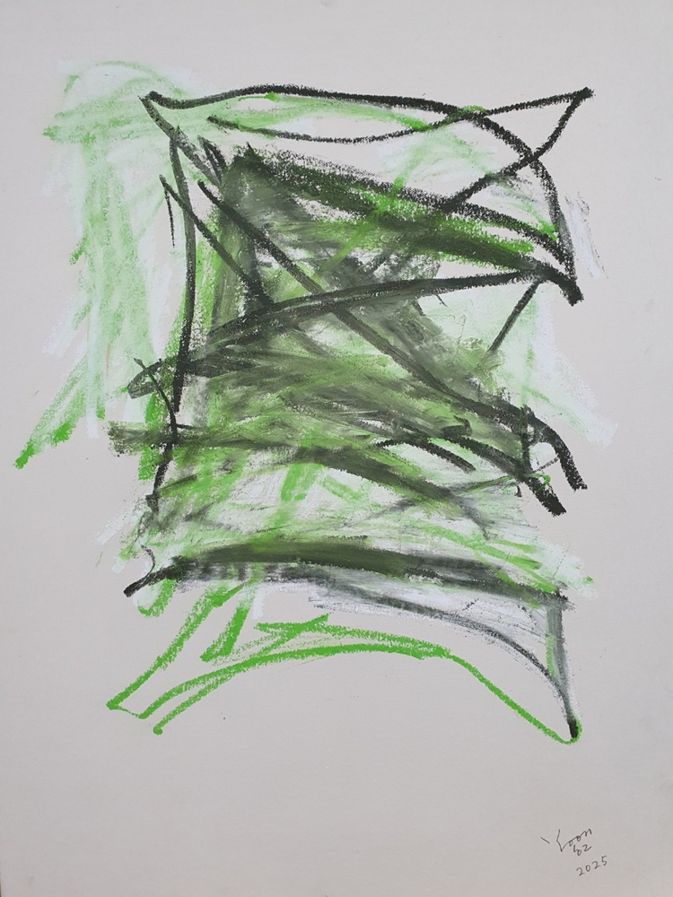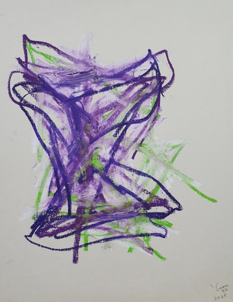 <즉흥 드로잉>, 2025, 캔버스에 한지 배접, 오일 파스텔, 72.7 × 60.6cm