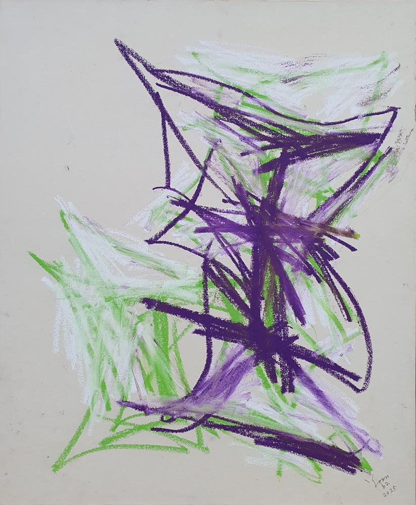 <즉흥 드로잉>, 2025, 캔버스에 한지 배접, 오일 파스텔, 60 x 51cm