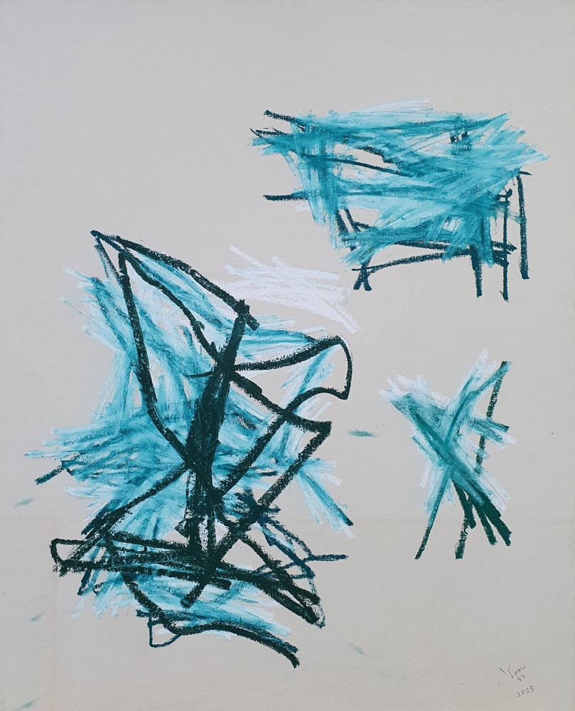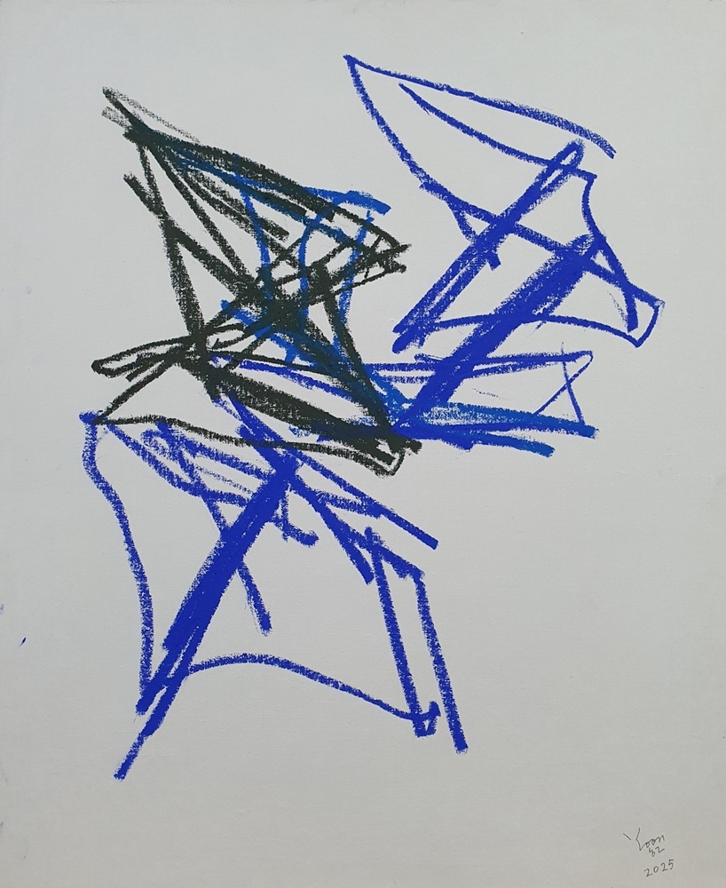 <즉흥 드로잉>, 2025, 캔버스에 한지 배접, 오일 파스텔, 100 x 81cm